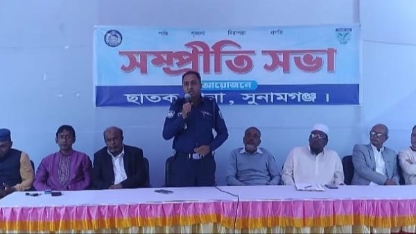 মোশাহিদ আলী সুনামগঞ্জের ছাতক থানা পুলিশের উদ্যোগে সম্প্রীতি সভা অনুষ্ঠিত হয়েছে। বুধবার দুপুরে থানা প্রাঙ্গনে অনুষ্ঠিত সম্প্রীতি সভায় সভাপতিত্ব করেন, ছাতক থানার ভারপ্রাপ্ত কর্মকর্তা গোলাম কিবরিয়া হাসান। থানার উপ-পরিদর্শক আবদুস